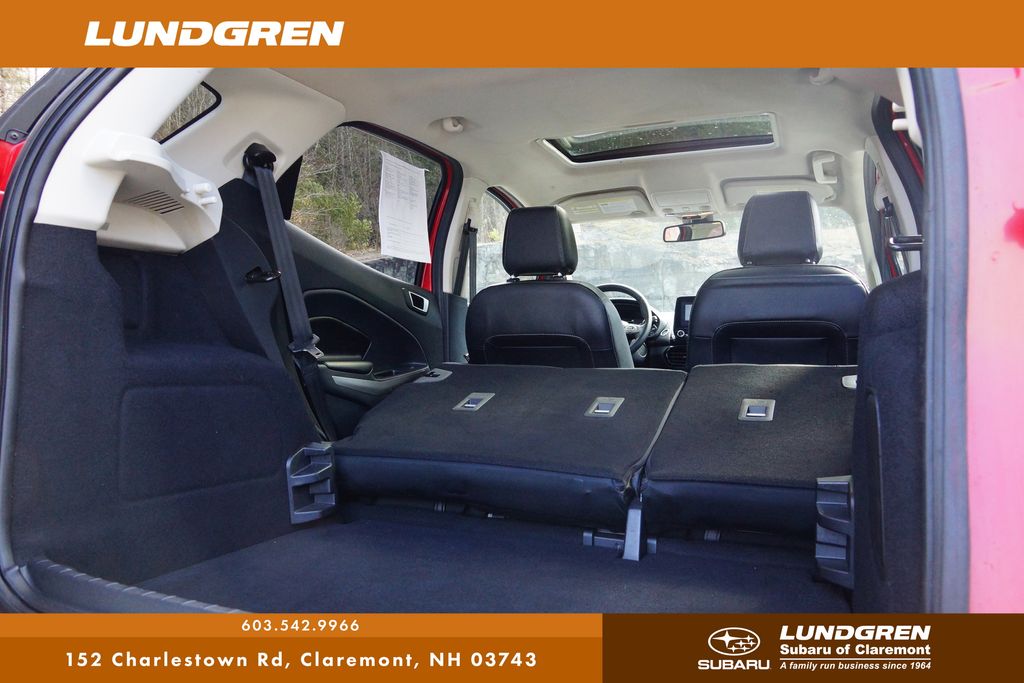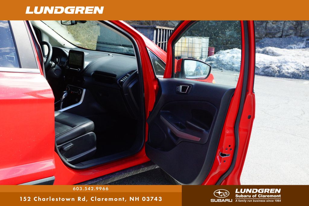 This 2019 Ford EcoSport Titanium is a nice option if you're looking for something compact but still well equipped. It was fully safety inspected by our Lundgren technicians, so it's been checked over and is ready to go. The Titanium trim gives it a more premium feel with upgraded interior features and a comfortable ride, while the smaller size makes it easy to maneuver and park. Its a practical little SUV that works well for everyday driving without feeling too basic. It also comes with our LUNDGREN CARS EXCLUSIVE 6 month/6,000 mile POWERTRAIN WARRANTY!